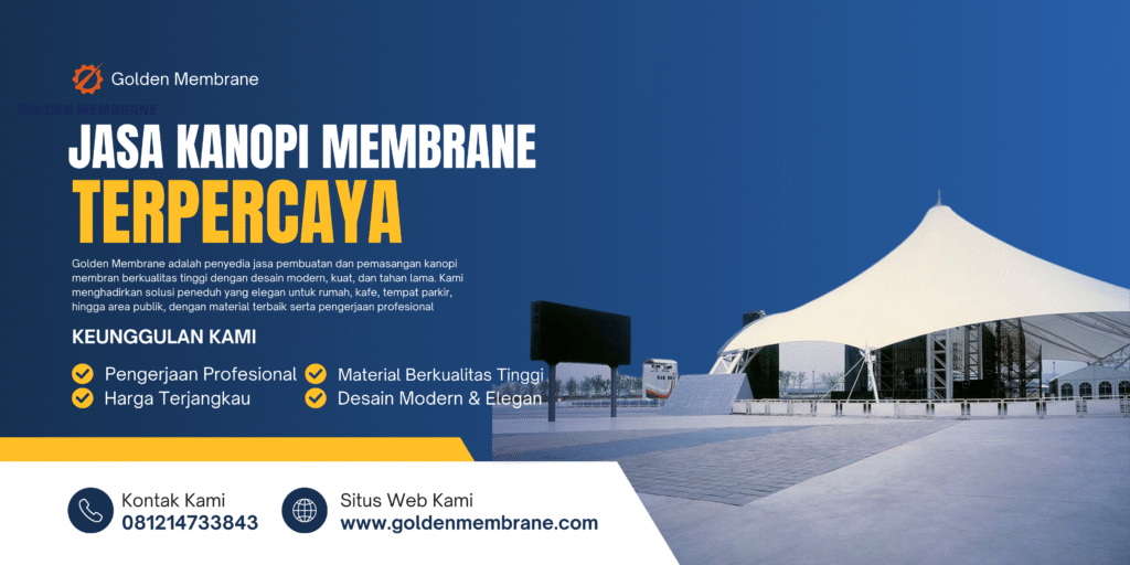 Selamat datang di website resmi golden membrane Indonesia !! Kami merupakan perusahaan yang memfokuskan diri di bidang pengerjaan kanopi atap membrane siap bekerjasama membantu anda untuk mengerjakan proyek yang sedang direncanakan !!