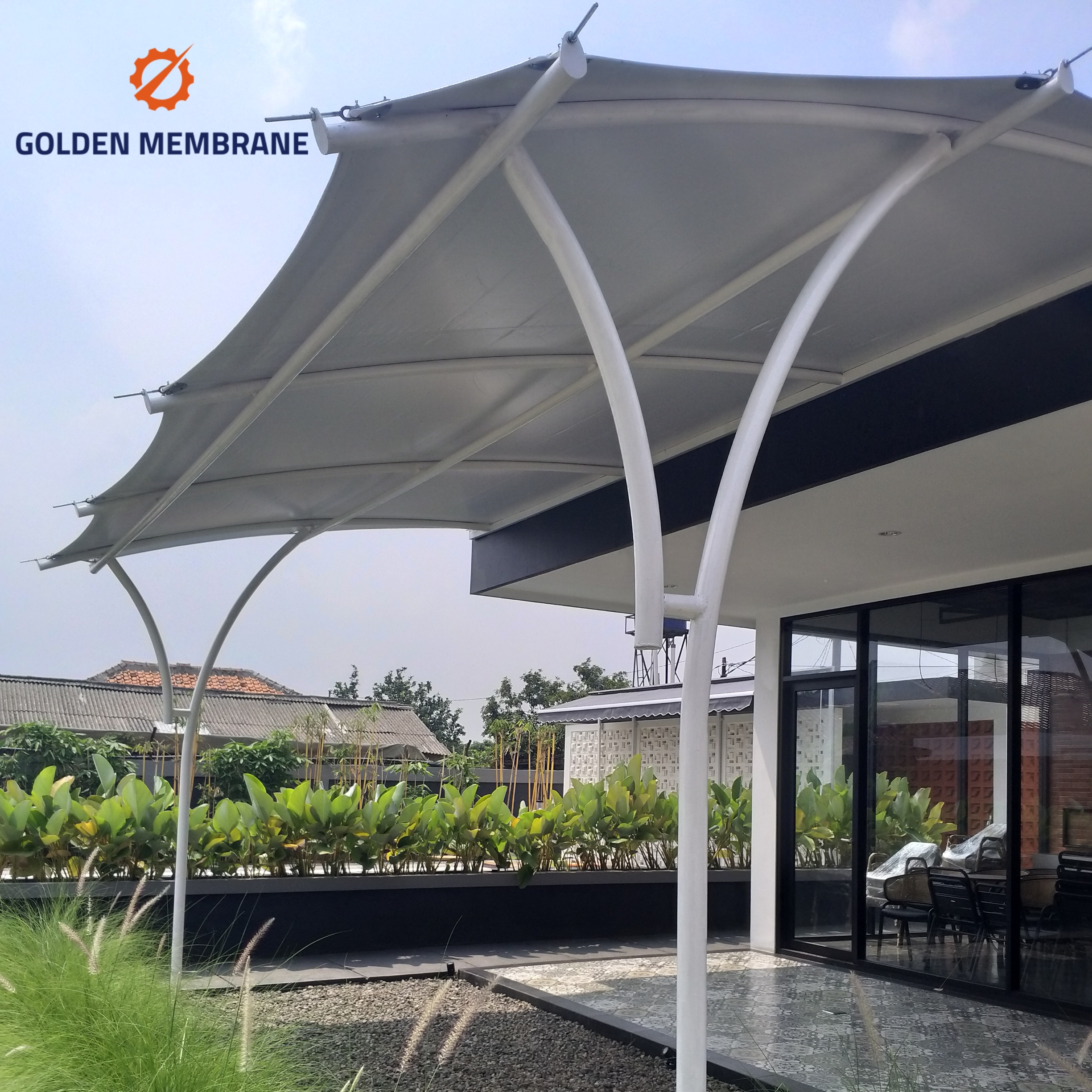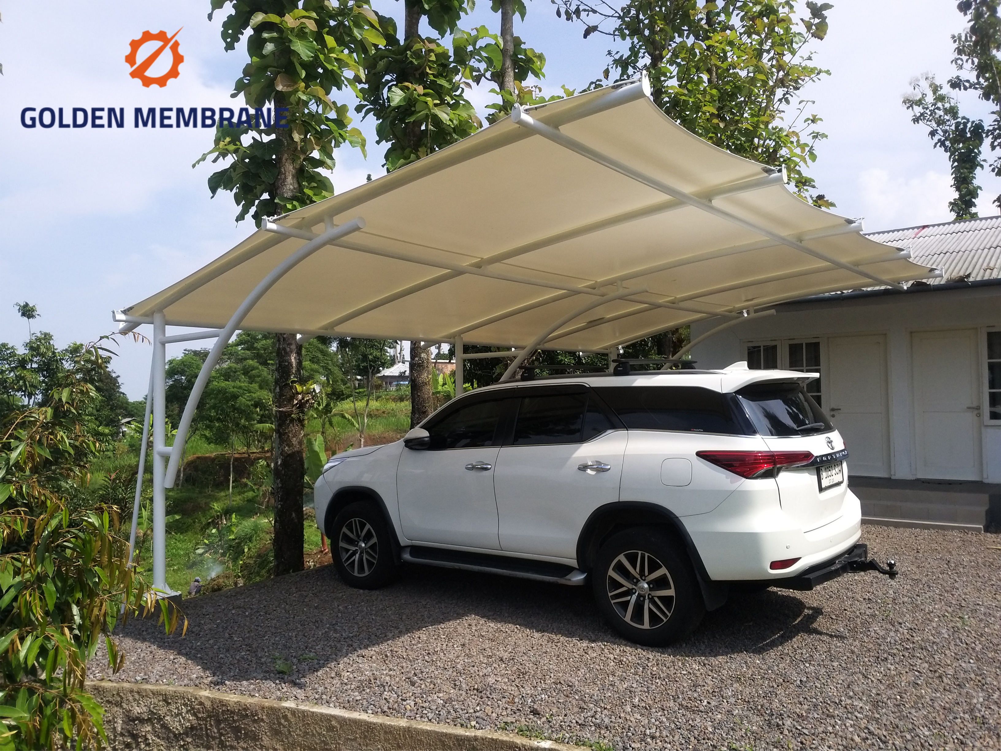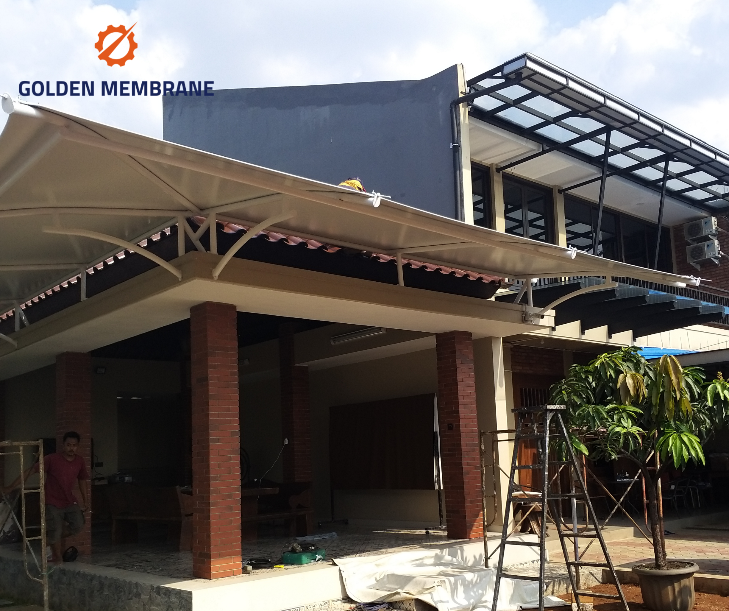 pemasangan kanopi membrane untuk area parkir di sebuah villa
